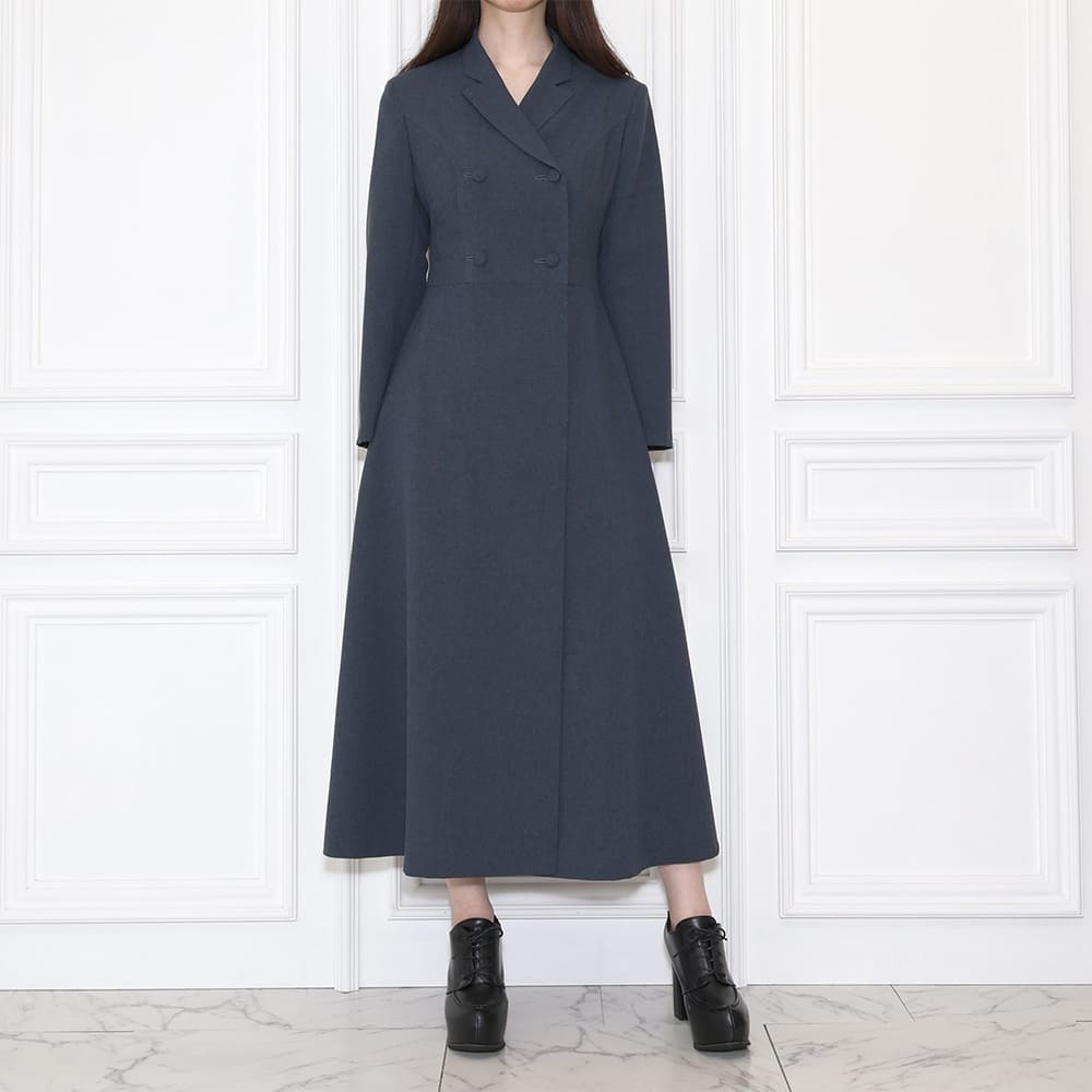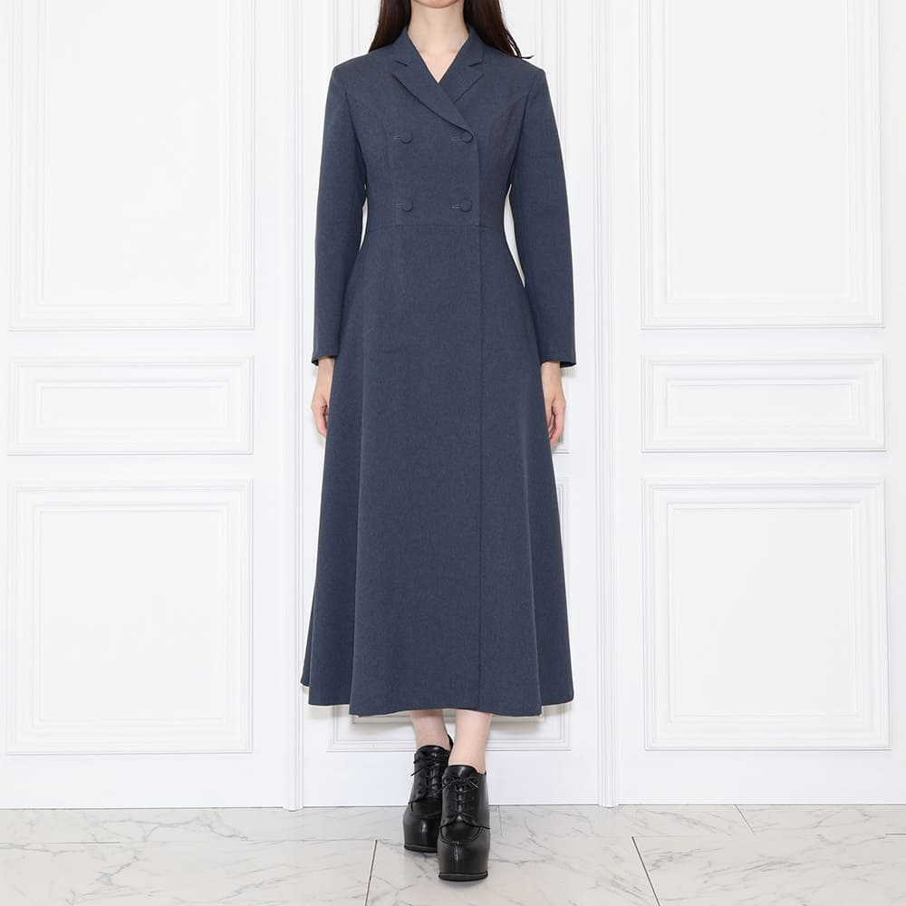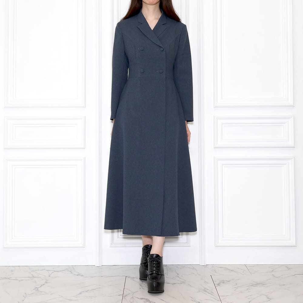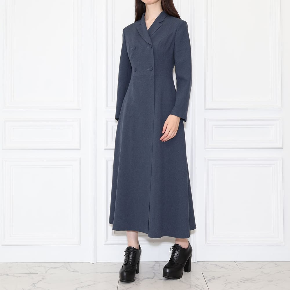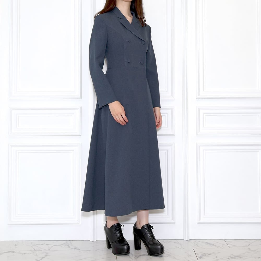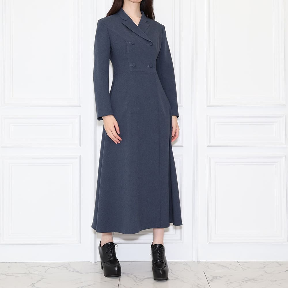 DESIGN:ラペルダブルミドルドレス / セミピークラペル / 長袖・二枚袖 / フレアスカート / ロング丈 / 総裏仕立て